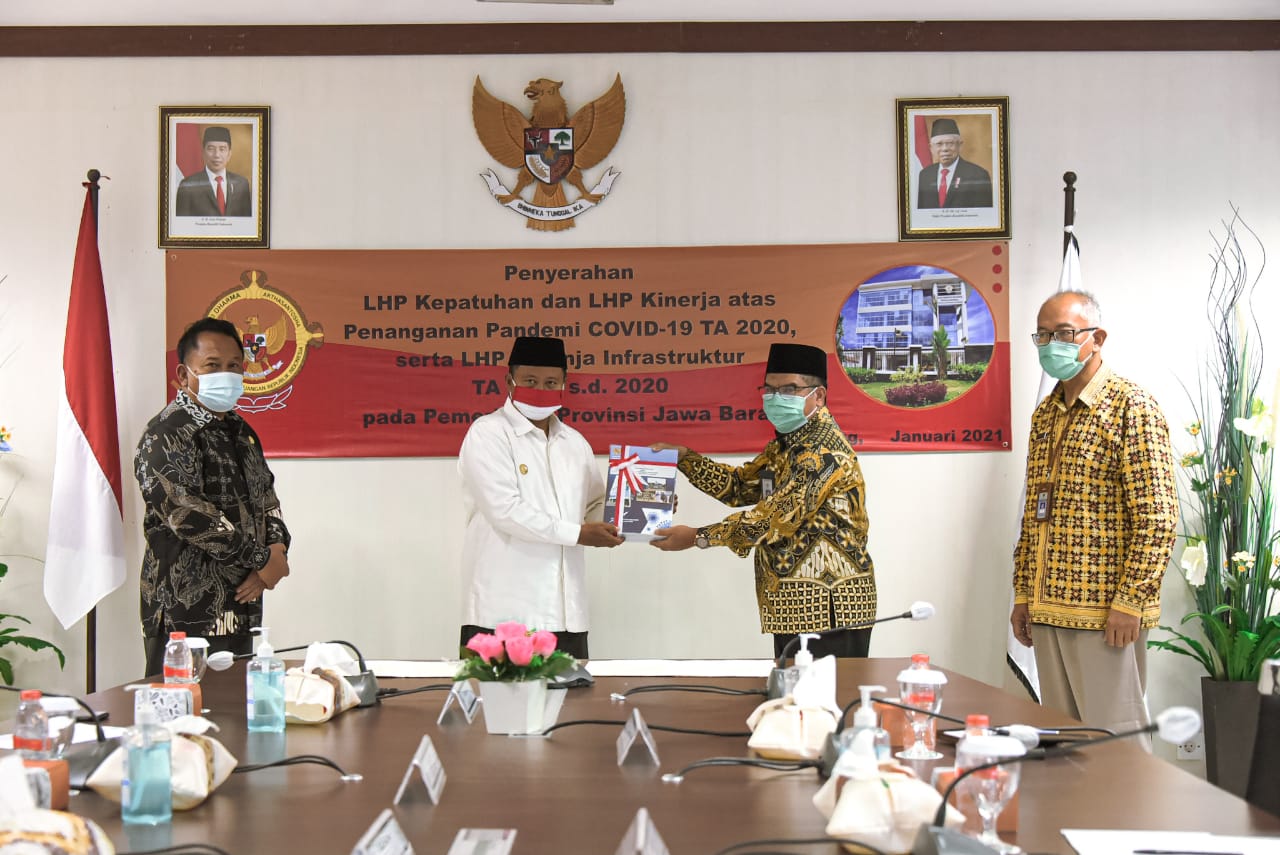 BPK Perwakilan Jabar menyerahkan LHP kepada Pemda Provinsi Jabar dan DPRD Jabar di Gedung BPK Perwakilan Jabar, Kota Bandung, Jumat (8/1/2021).