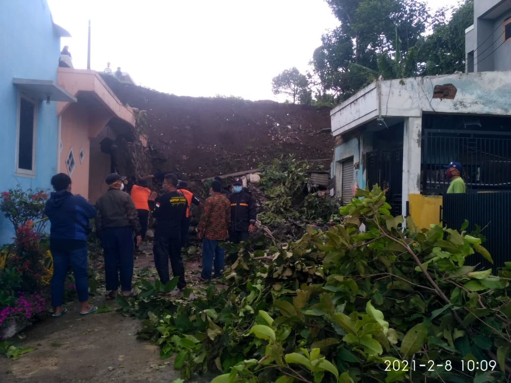 “Tembok penahan tanah (TPT) dengan panjang sekitar 15 meter dan tinggi 5 meter longsor yang mengakibatkan dua rumah rusak dan satu unit mobil,” jelasnya saat dihubungi PenaKu.ID Senin, (08/02/2021).