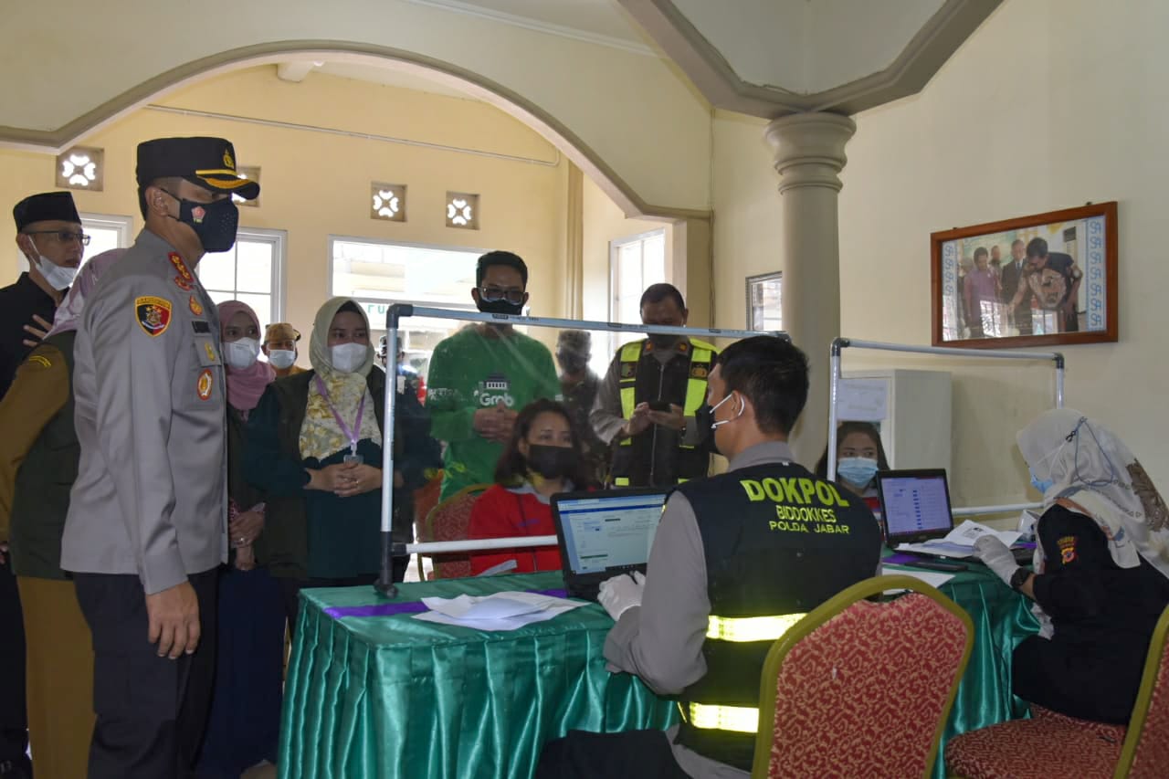 CIREBON, (cirebonbagus.id).- Kapolresta Cirebon, Kombes Pol M. Syahduddi, S.I.K, M.Si, bersama jajaran Forkopimda Kabupaten Cirebon melaksanakan monitoring vaksinasi Covid-19 secara massal di RS Sumber Hurip, Selasa (8/6/2021).