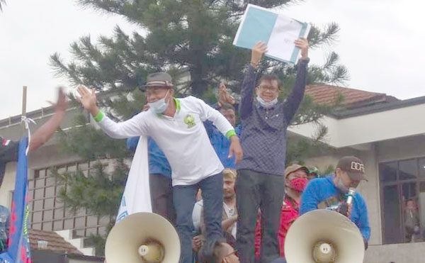 “Atas nama Pemerintah Daerah Kabupten Subang, mendukung aspirasi yang disuarakan para buruh, dan mendukung pencabutan Undang-undang Omnibus Law,,