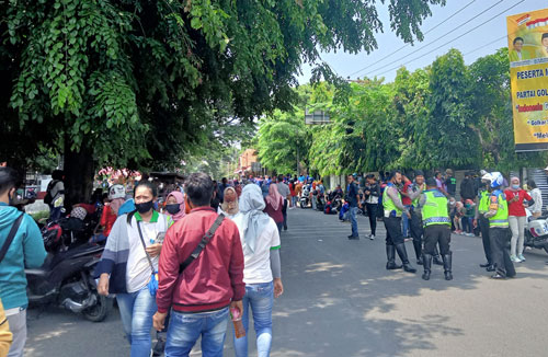 Aksi Konvoi kendaraan dan unjuk rasa dari ribuan element buruh dan mahasiswa di Subang, sejak pagi mendapat pengawalan ketat dari pihak kepolisian. Bahkan ratusan aparat kepolisian dan Satpol PP juga telah berjaga-jaga di seputar Kota Subang, terutama kantor Bupati dan DPRD Subang. (SONY/FORMASNEWS.COM)