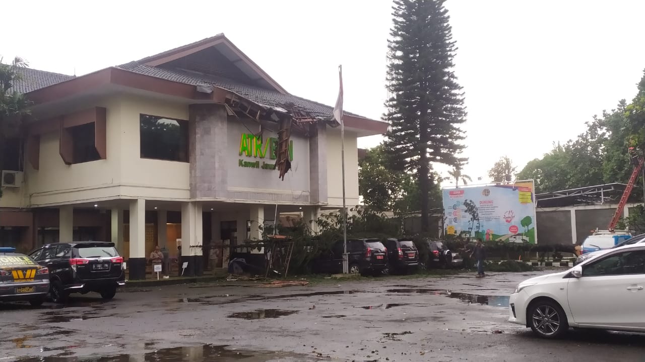Selain merusak bagian atap, pohon itu pun menimpa sebanyak empat mobil yang tengah terparkir di depan Kantor BPN itu. Beberapa di antaranya merupakan mobil dinas berplat merah.