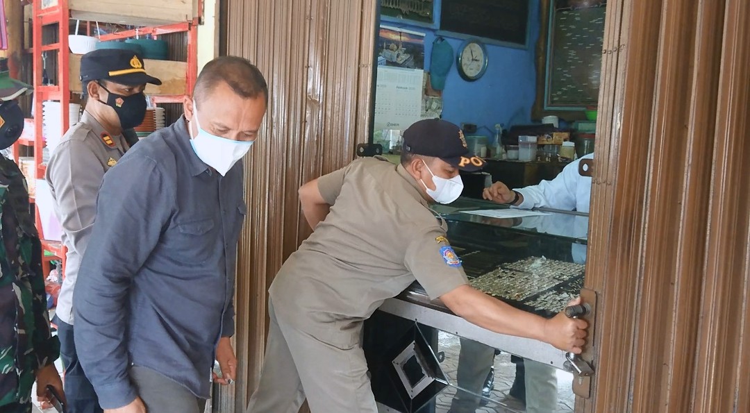 Aparat Tidak 5 Toko di Pasar Dermaga yang Langgar PPKM Darurat