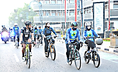Sebelum pelaksanaan Gowes, terlebih dahulu para peserta melaksanakan Cek Suhu Badan, pemanasan dengan tujuan. Agar pada pelaksanaannya tidak terjadi permasalahan bagi peserta.