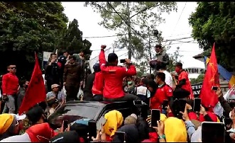 Dikerumuni Massa Aksi Wabup Garut Nyatakan Menolak UU OMNIBUS LAW