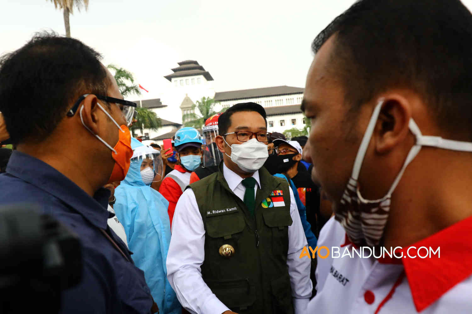 BANDUNG — Gubernur Jawa Barat Ridwan Kamil telah menandatangani surat pengantar aspirasi buruh Jawa Barat terkait penolakan UU Cipta Kerja di Gedung Sate, Kota Bandung, Kamis (8/10/2020).