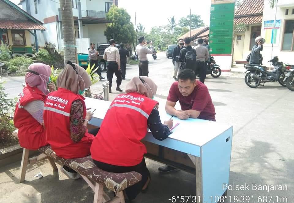 MAJALENGKA | Jajaran Polsek Banjaran Polres Majalengka bersama tim gugus tugas Covid 19 Kecamatan Banjaran, koramil, Sat Pol PP Kecamatan Banjaran dan instansi terkait terus melaksanakan Operasi Yustisi, Bertempat di jln Raya Desa Cimeong tepatnya depan kantor desa cimeong Kecamatan Banjaran Kabupaten Majalengka, Jum’at 10/10/2020.