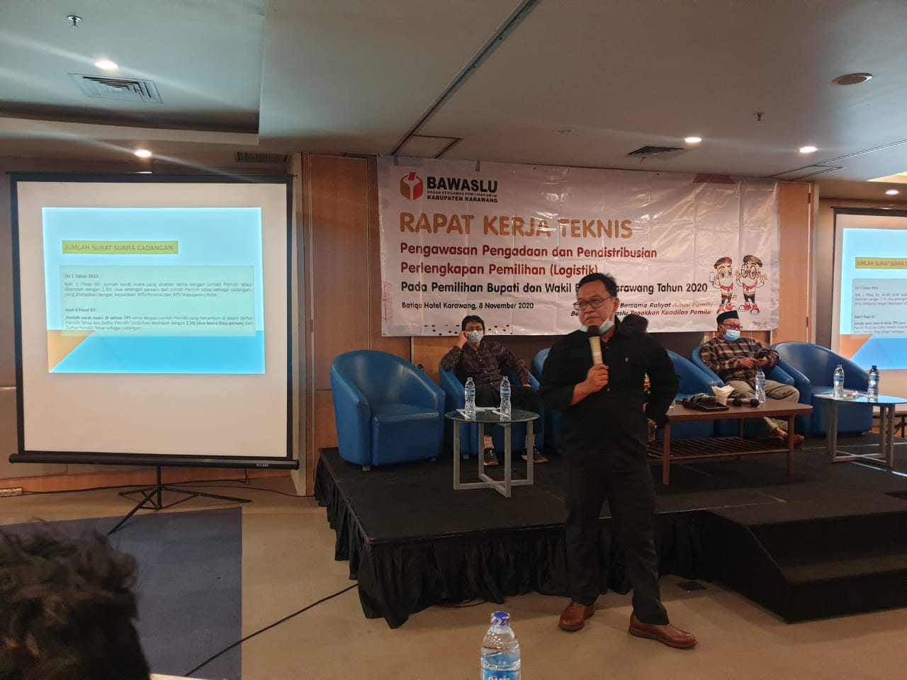 KARAWANG- Bawaslu Kabupaten selenggarakan Rapat Kerja Teknis Pengawasan Pengadaan dan Pendistribusian Perlengkapan Pemilihan (Logistik) dalam rangka persiapan Pilkada.