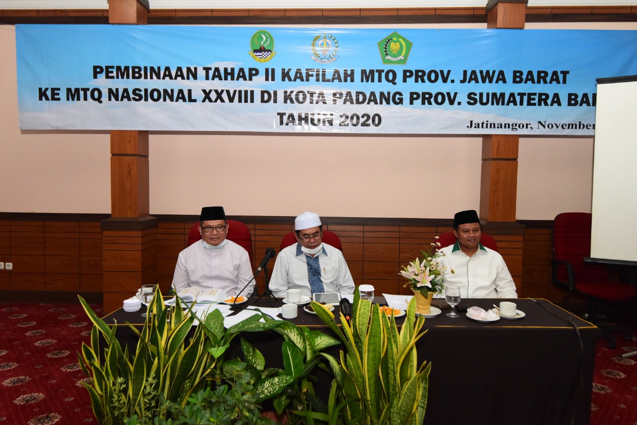 SUMEDANG – Wakil Gubernur (Wagub) Jawa Barat (Jabar) Uu Ruzhanul Ulum memotivasi para calon peserta Musabaqah Tilawatil Qur’an (MTQ) Tingkat Nasional XXVIII Tahun 2020 asal Jabar yang tengah berlatih di Hotel Puri Khatulistiwa, Jatinangor, Kabupaten Sumedang, Minggu (8/11/2020).