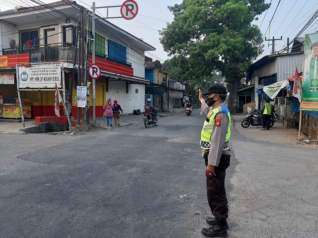 Seperti yang terpantau,salah personil unit Sabhara Polsek Solokanjeruk Bripka Deden Mulyana tengah melaksanakan pengaturan lalu lintas diperempatan Jl.Sasak bengkung guna mengurai kemacetan pada setiap pagi dan sore hari yang mana seperti yang diketahui bahwa di Jl.Sasak bengkung Ds/Kec.Solokanjeruk Kab.Bandung tersebut rawan sekali terjadi kemacetan yang diakibatkan oleh sempitnya ruas jalan dilokasi tersebut. ( Senin 10/05/2021 ).