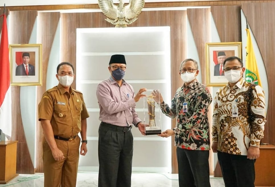 KOTA SUKABUMI,- Pemerintah Kota Sukabumi mendapatkan penghargaan berupa piala Apresiasi Ekonomi Digital (AEG) tahun 2021 dari Bank BI Perwakilan Jawa Barat di Balai Kota Sukabumi Jawa Barat, senin (09/8/2).