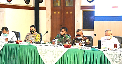 Bandung – PANGDAM III/Slw Mayjen TNI Nugroho Budi Wiryanto, S.I.P., M.M., Q.I.A, beserta Pejabat Forkopimda Jabar dan pejabat lainnya. Mengikuti Rapat Koordinasi Khusus (Rakorsus) Tingkat Menteri yang di selenggarakan melalui video conference. Dengan menggunakan aplikasi zoom meeting, bertempat di Ruang Siliwangi Kodam III/Siliwangi, Jl. Aceh No. 69 Bandung. Rabu (9/9/2020).
