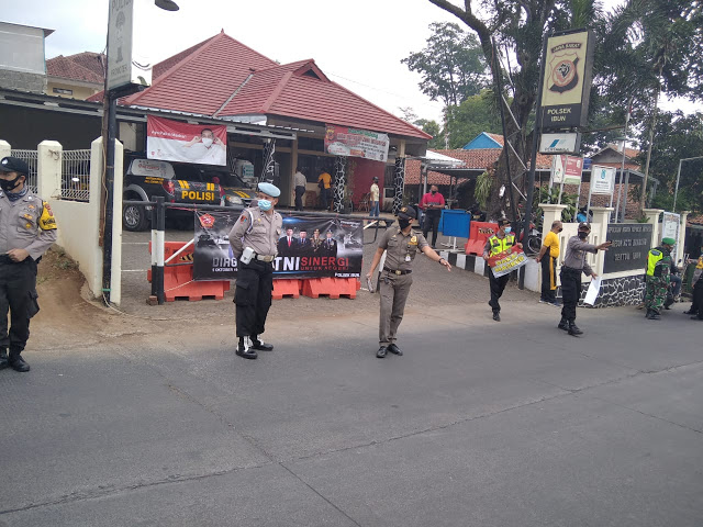 IBUN – Selama pandemi covid-19, Polsek Ibun Polresta Bandung tak henti-hentinya memberikan imbauan protokol kesehatan, Sabtu (10/10).