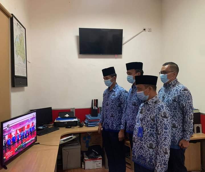 KARAWANG- Pegawai Kantor Imigrasi Kelas II Non TPI Karawang mengikuti kegiatan Upacara Peringatan Hari Pahlawan secara daring, Selasa (10/11/2020). Kegiatan tersebut diikuti oleh seluruh pegawai yang bekerja di kantor maupun yang menerapkan sistem kerja dari rumah (work from home).