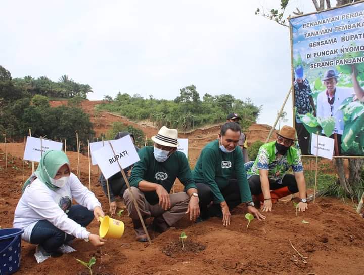 SUBANG– Pemkab Subang bekerjasama dengan Perhutani melakukan penanaman tembakau MT I di Bukit Nyomot Kecamatan Serangpanjang , Subang. Tembakau MT I tersebut ditanam dilahan tidur dan digarap oleh 7 kelompok tani