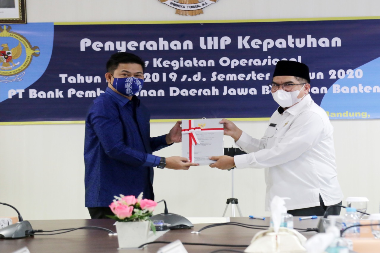 BANDUNG — Kinerja PT Bank Pembangunan Daerah Jawa Barat dan Banten (bank Bjb) mendapat apresiasi dari Wakil Ketua DPRD Jabar H. Oleh Soleh saat menghadiri kegiatan Penyerahan Hasil Pemeriksaan Kepatuhan Atas Kegiatan Operasional Tahun Buku 2019 dan Semester I Tahun Buku 2020, di Gedung BPK Perwakilan Provinsi Jawa Barat.