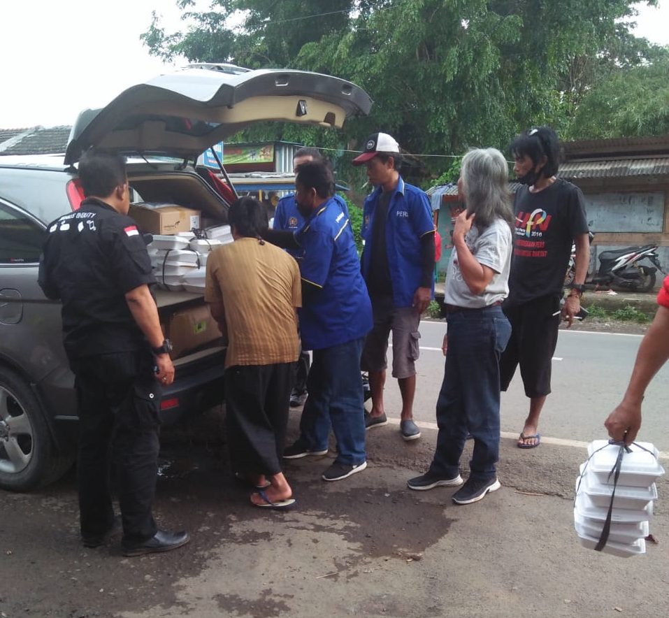 Ket. foto: Mau mandi di SPBU tidak ada air, Dini beserta saudaranya bertemu tim Peduli Banjir dari PWI Kab.subang, yang sedang membagi bagikan nasi kotak kepada warga Pamanukan Subang, Selasa (10/01/2021).