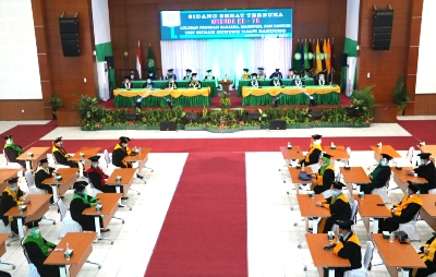 Rektor menetapkan wisudawan peraih pujian kelulusan dengan IPK tertinggi sebanyak 36 lulusan yang dibacakan oleh Wakil Rektor I Bidang Akademik, Prof. Dr. H. Rosihon Anwar, M. Ag