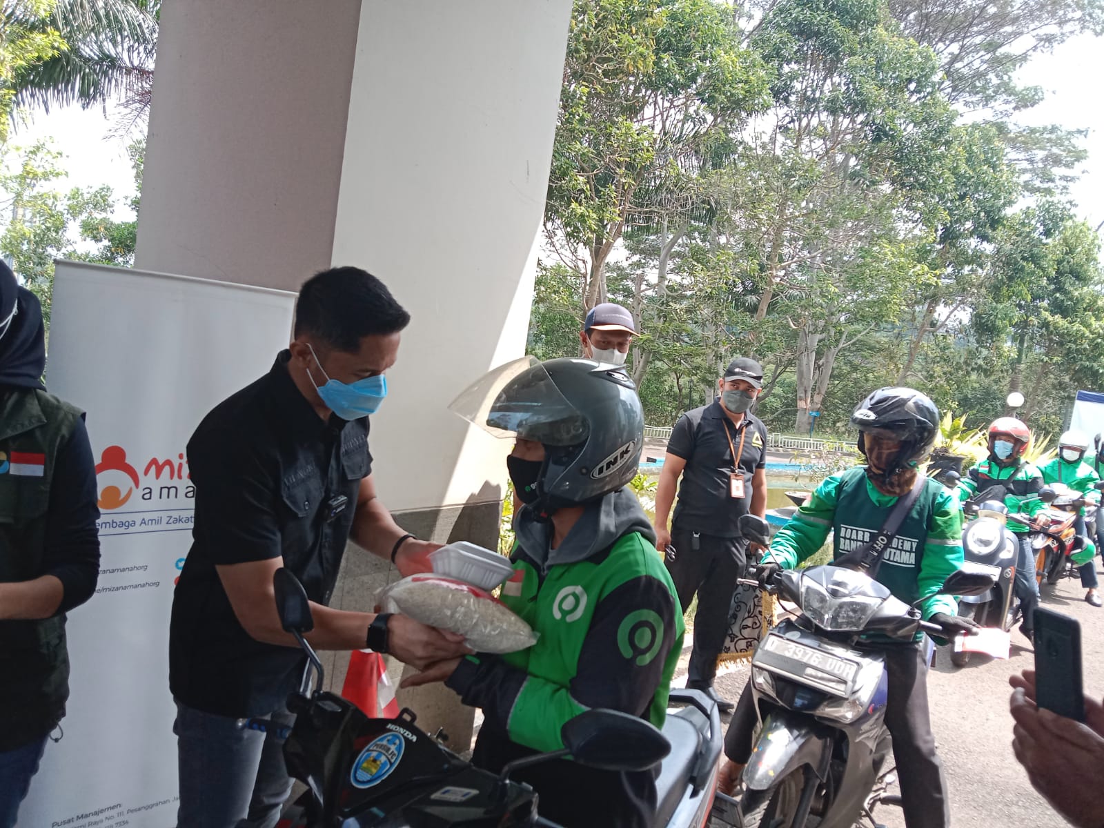 KAB. BANDUNG BARAT,- Ratusan Ojol di Bandung Barat ( Driver Ojek Online) mendapat bantuan beras dan nasi box dari Mizan Amanah dan Paman (papa mama nyentrik).