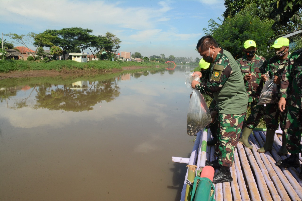 Bandung,- Munculkan potensi sumber kehidupan di DAS Citarum, Pangdam III/Siliwangi Mayjen TNI Nugroho Budi Wiryanto, menebar puluhan ribu benih ikan di Daerah Aliran Sungai Citarum bertempat di daerah aliran Sungai Citarum di Sektor 5 Kampung Sapan Desa Bojongemas Kecamatan Solokan jeruk Kabupaten Bandung Jabar, Kamis (11/2/2021).