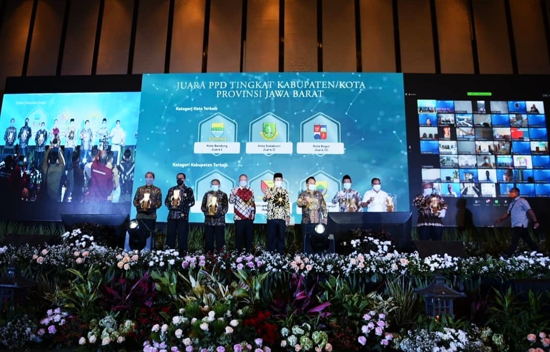 KOTA SUKABUMI,- Pemerintah Kota (Pemkot) Sukabumi mendapatkan penghargaan dari Gubernur Jawa Barat Ridwan Kamil atas program udunan online di Trans Luxury Hotel Bandung Jawa Barat pada Senin (12/4/21).