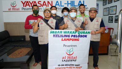 BANDUNG – LAZ (Lembaga Amil Zakat) “Al Hilal” – Team sebar wakaf Al Qur’an berangkat menuju Lampung pada Selasa (12/01/2021). Kegiatan sebar wakaf Al Qur’an yang dilaksanakan pada tanggal 12-20 Januari 2021 ini dipimpin oleh Ketua Harian Yayasan Al Hilal Hendra Setiawan.