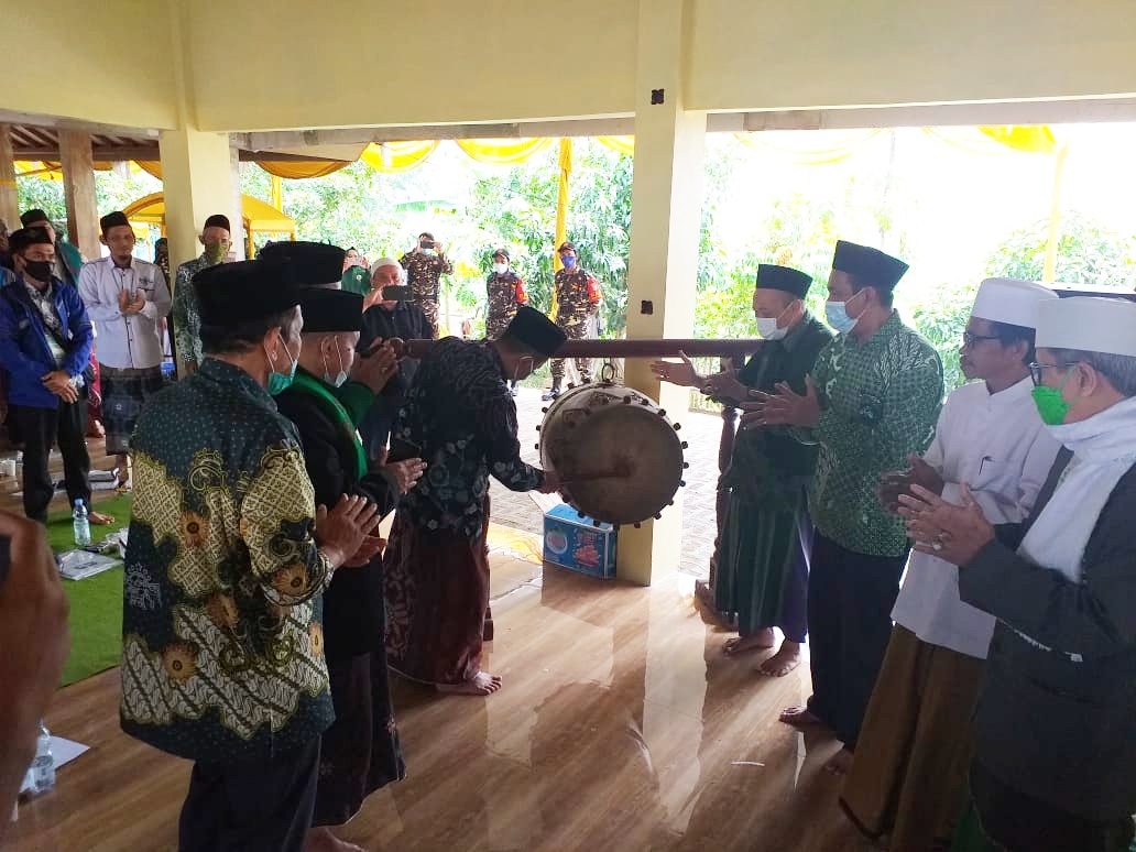 Didampingi oleh ketua PC NU dan Wakil Bupati Karawang, secara simbolik Gus Hasan membuka Muskercab II PC NU Karawang dengan memukul bedug.