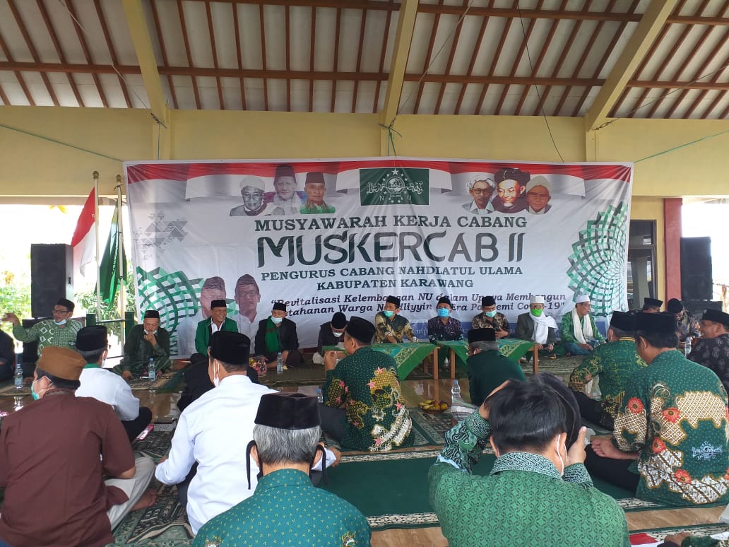 KARAWANG- Musyawarah Kerja Cabang (Muskercab) Pengurus Cabang Nahdlatul Ulama (PCNU) Kabupaten Karawang yang kedua tetap dilaksanakan meski dalam masa pandemi Covid-19 ini, namun sedikit berbeda dari biasanya.