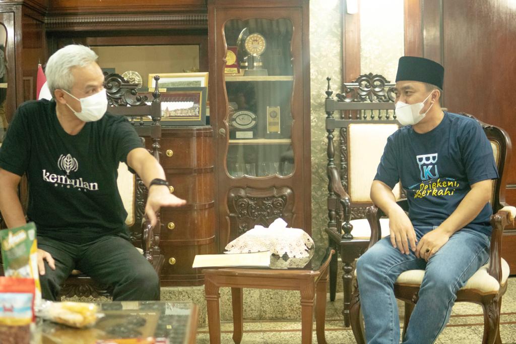 TASIK–Wakil Bupati Tasikmalaya Deni Rhamdani Sagara, menemui seniornya yang juga sesama alumni Universitas Gadjah Mada (UGM) Yogyakarta, yang menjabat Gubernur Jawa Tengah Ganjar Pranowo di Semarang, Rabu (10/3/2021) malam.