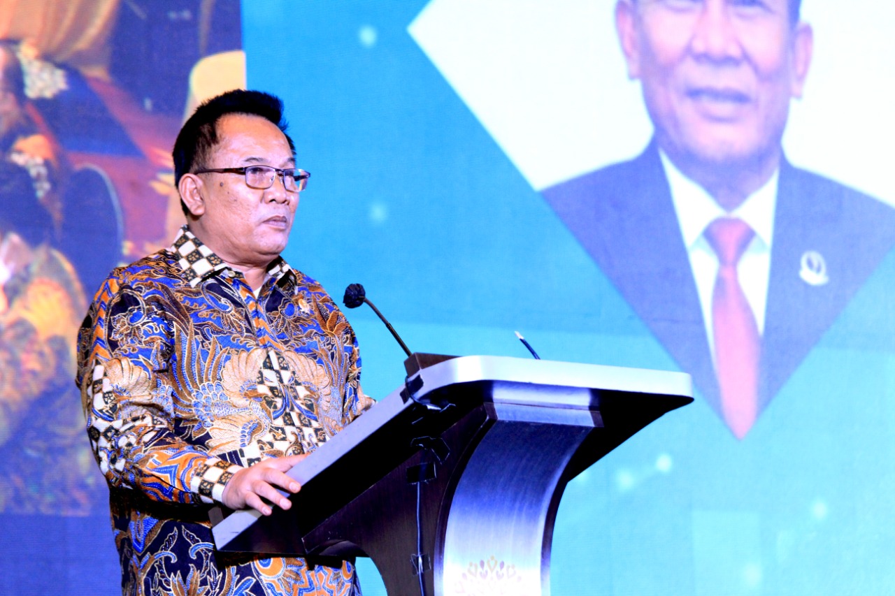 Ketua DPRD Provinsi Jawa Barat Brigjen TNI (Purn) Taufik Hidayat saat menghadiri dan memberikan sambutan pada Musrenbang Jawa Barat Tahun 2022, di Trans Luxury Hotel, Kota Bandung, Senin (12/4/2021). (Foto : Budi/Fajar/Humas DPRD Jabar).