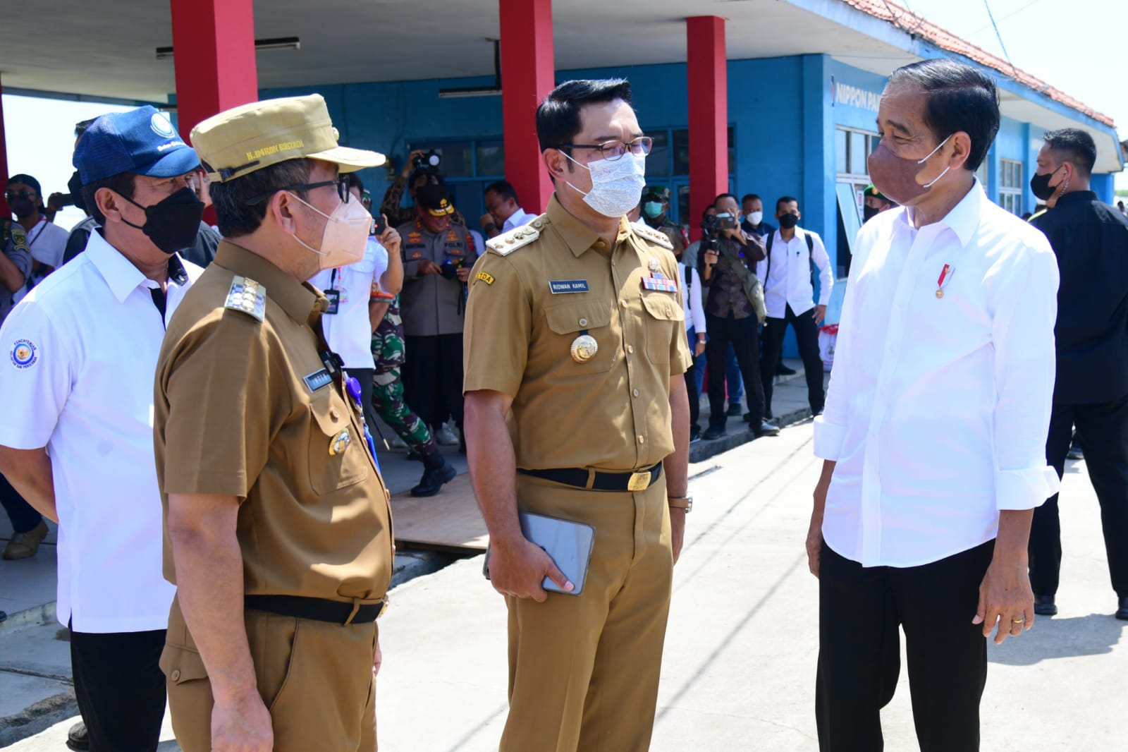 Gubernur Jawa Barat Ridwan Kamil saat mendampingi Presiden RI Joko Widodo melakukan kunjungan kerja beraudiensi dengan nelayan, di Pasar Ikan Selo Pengantin Desa Bandengan, Kecamatan Mundu, Kabupaten Cirebon, Rabu (13/4/2022). (Foto: Rusman/Biro Pers Sekretariat Presiden)