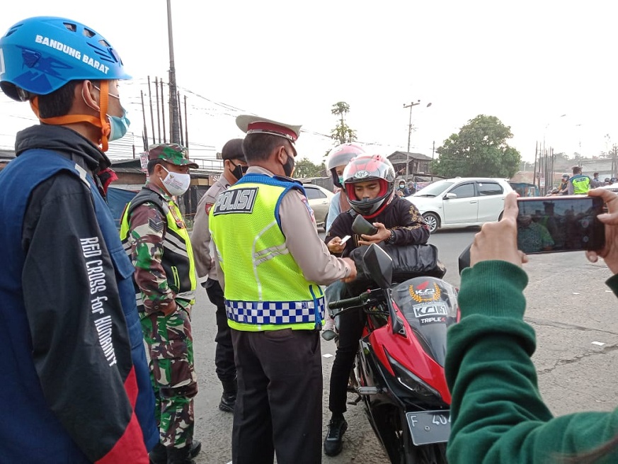 CIMAHI – Jajaran Satlantas Polres Cimahi dan Pemerintah Kota Cimahi serta Kabupaten Bandung Barat melaksanakan penyekatan pemudik menjelang Lebaran 2021. Penyekatan bagi pemudik ini dilaksanakan di sekitar jalur Tol Padalarang, sebelum kendaraan roda dua dan empat masuk jalur tol, petugas polri dan tim penyekat yang dilibatkan sudah langsung menyiapkan perlengkapan Prokes. Yakni cek suhu pengemudi, harus memakai masker dan harus ada surat jalan dari dishub serta hasil tes Swab Covid-19.