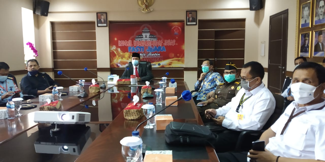 Menkumham Yasonna H Laoly meresmikan layanan publik Revolusi Digital Kemenkumham RI, diikuti seluruh Pimpinan tinggi Kanwil Kemenkumham Jabar, Ombudsman Jabar, Kejari dan BNNP, melalui virtual zoom, bertempat diruang rapat Kakanwil jl. Jakarta.no. 27 Bandung,  Senin, (12/10/2020).