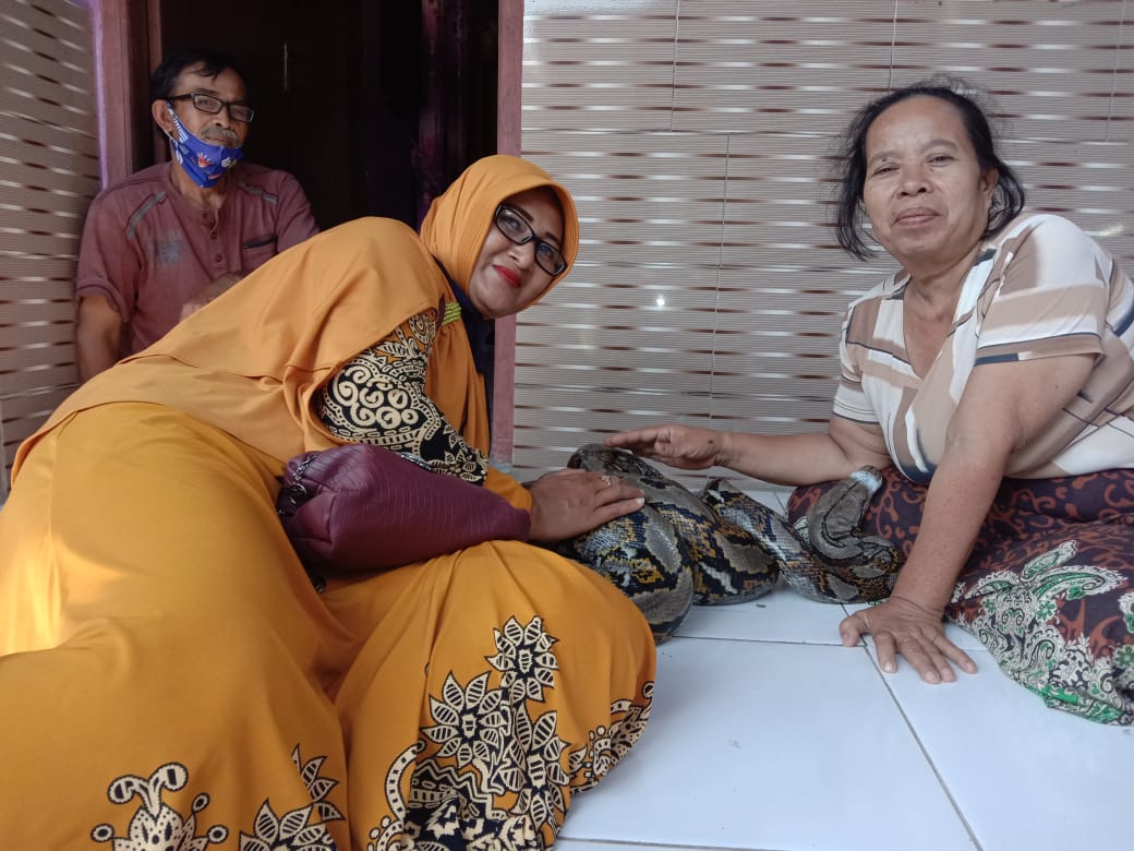 Menurut Ama, ular piton betina ini ditemukan disekitar irigasi ,diperkirakan ada yang membuangnya karena sewaktu ditangkap sudah jinak ,panjangnya diperkirakan 3 meteran.