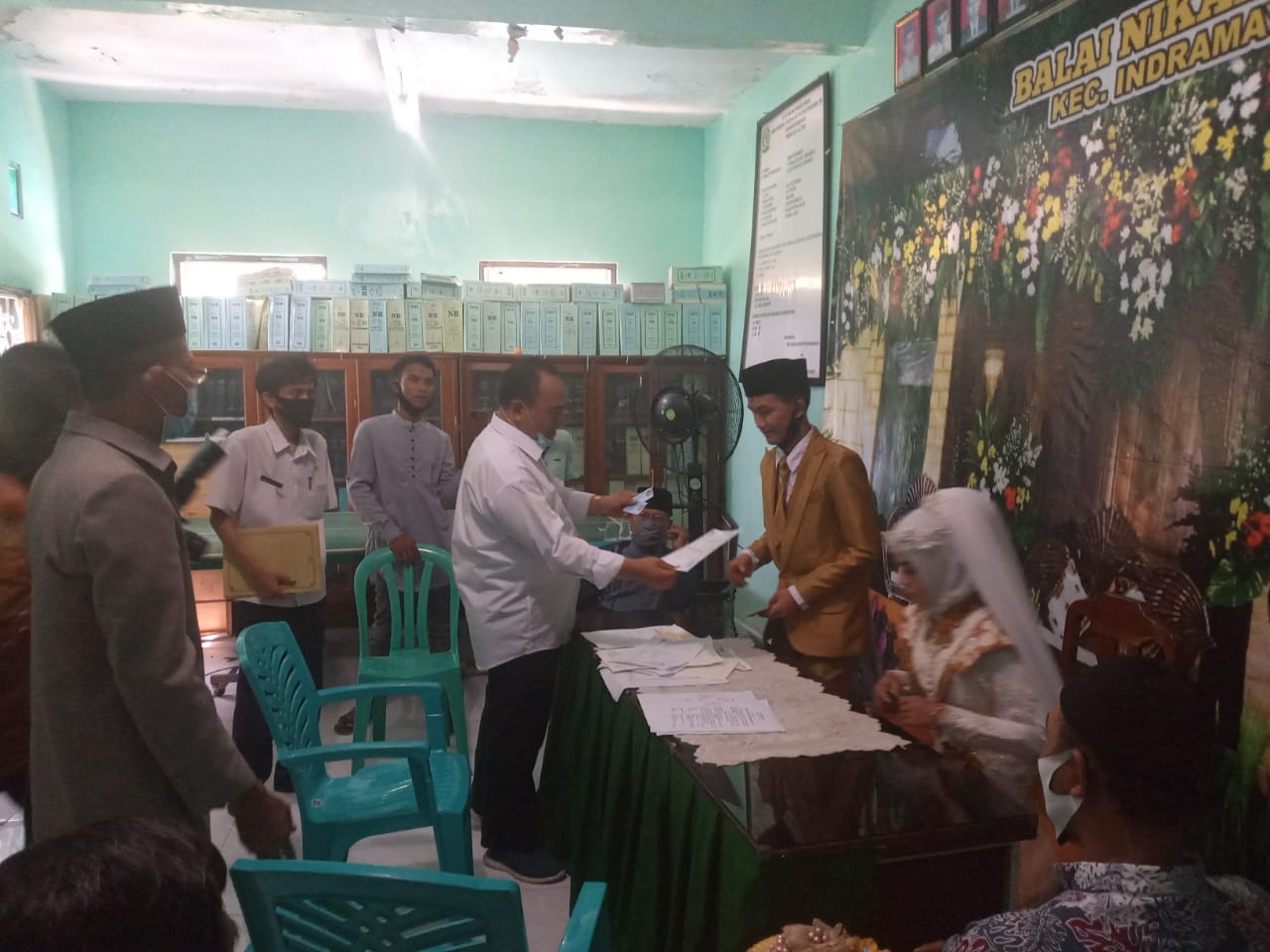 Seperti yang terlihat pada hari Rabu (11/11/2020) di Kantor KUA Kecamatan Indramayu, pernikahan pasangan muda antara Dias Ferdiansyah dari Kelurahan Lemah Abang dengan Nur Ilisyah Idora dari Desa Pabean Udik Kecamatan Indramayu. Setelah melangsungan akad nikah di KUA kedua pasangan tersebut langsung menerima 3 adminduk yang diserahkan langsung oleh Kepala Dinas Kependudukan dan Pencatatan Sipil Kabupaten Indramayu.