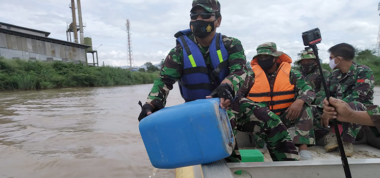 Kab. Bandung,- Dengan menggunakan perahu Katamaran, Dansektor 7 Satgas Citarum Harum Kolonel Kav Purwadi pimpin penaburan cairan Bios ke Sungai Citarum di wilayah Sektor 7.