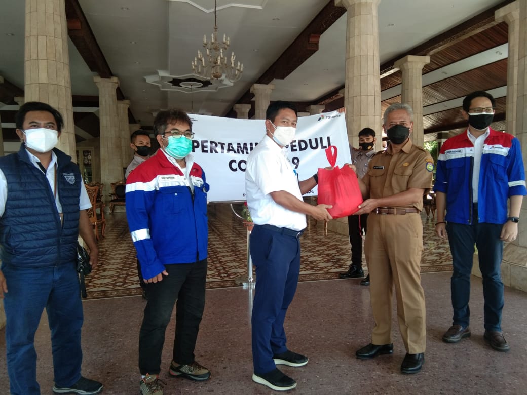 Pjs.Senior Manager Operation Manufacturing (SMOM RU VI ), Dedi Susanto didampingi Manager HC, Gusman Adhiwardana, Area Manager Comrell, Cecep Supriyatna dan Fungsi OPI, M.Sultan Ali Akbar mengatakan, penyaluran paket sembako ini sebagai kepedulian Pertamina RU VI Balongan kepada warga Indramayu yang saat ini sedang menjalani isoman.