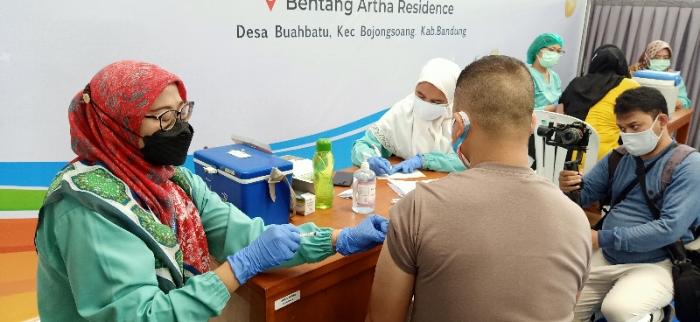 Pada vaksinasi ini targetnya melayani sampai 500 dosis bagi para warga di Desa Buahbatu yang belum menerima vaksinasi Covid-19.