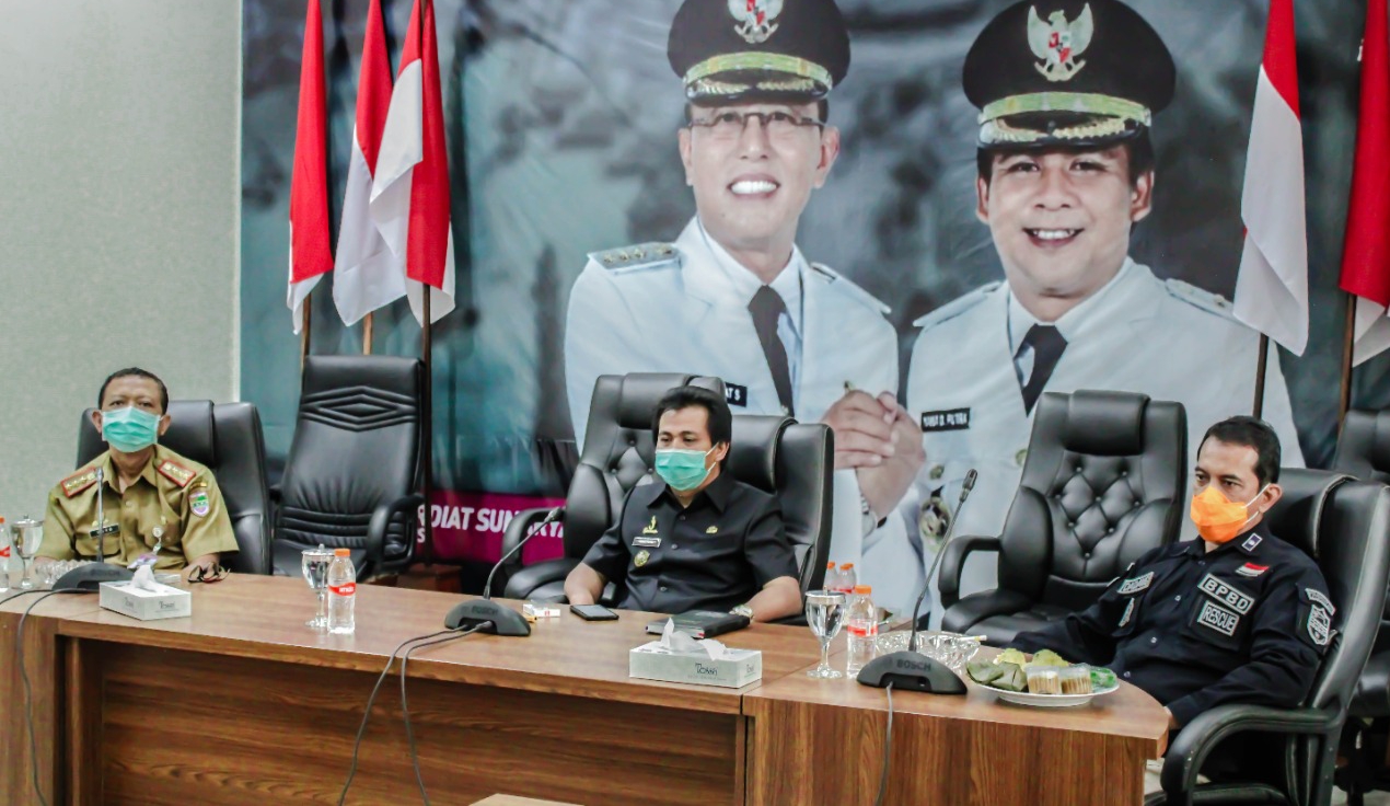 Wakil Bupati Ciamis Yana D Putra didampingi Kepala Dinas Kesehatan dan Kepala BPBD Kabupaten Ciamis menghadiri acara rapat Koordinasi Targeted Testing dan Tracing Covid-19 di Jabodetabek Dan Bali melalui video conference di Ruang Vidcon Setda Ciamis.