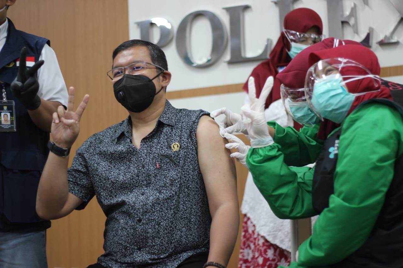 BANDUNG – Pemerintah Kota Bandung melaksanakan vaksinasi Covid-19 pertamanya di RSKIA, Kota Bandung, Kamis (14/1/2021). Vaksinasi Covid-19 tersebut itu dihadiri Ketua Komisi A DPRD Kota Bandung, Rizal Khairul yang juga mendapat suntikan vaksin Covid-19. Selain itu tampak hadir Gubernur Jawa Barat Ridwan Kamil, Wakil Walikota Bandung Yana Mulyana, dan beberapa pejabat Forkopimda dan pesohor Ariel Noah yang juga divaksin.