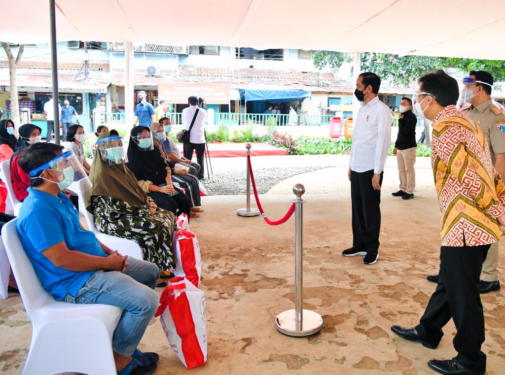 Sekitar pukul 10.20 WIB, Kepala Negara tiba di lokasi dengan sebelumnya tampak berjalan kaki menyusuri jalan kecil untuk menuju lokasi vaksinasi yang berada di ruang publik terpadu ramah anak (RPTRA) di kawasan tersebut.