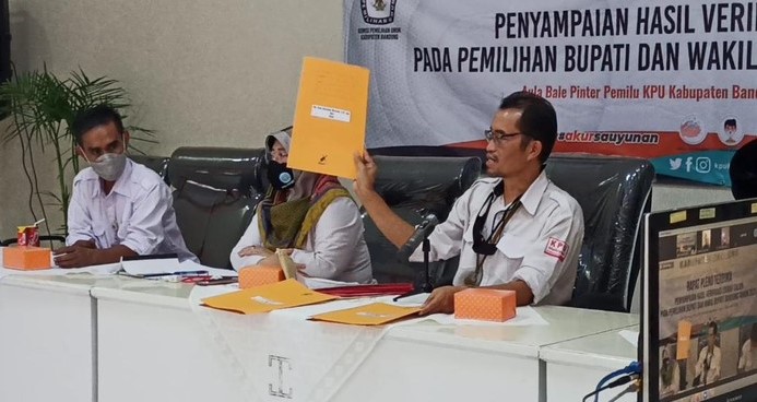 BANDUNG – Komisi Pemilihan Umum (KPU) Kabupaten Bandung temukan berkas yang tidak sah dari tiga bakal pasangan calon yang mendaftar di Pilbup Bandung. Berkas tersebut harus diperbaiki hingga 16 September 2020 nanti.