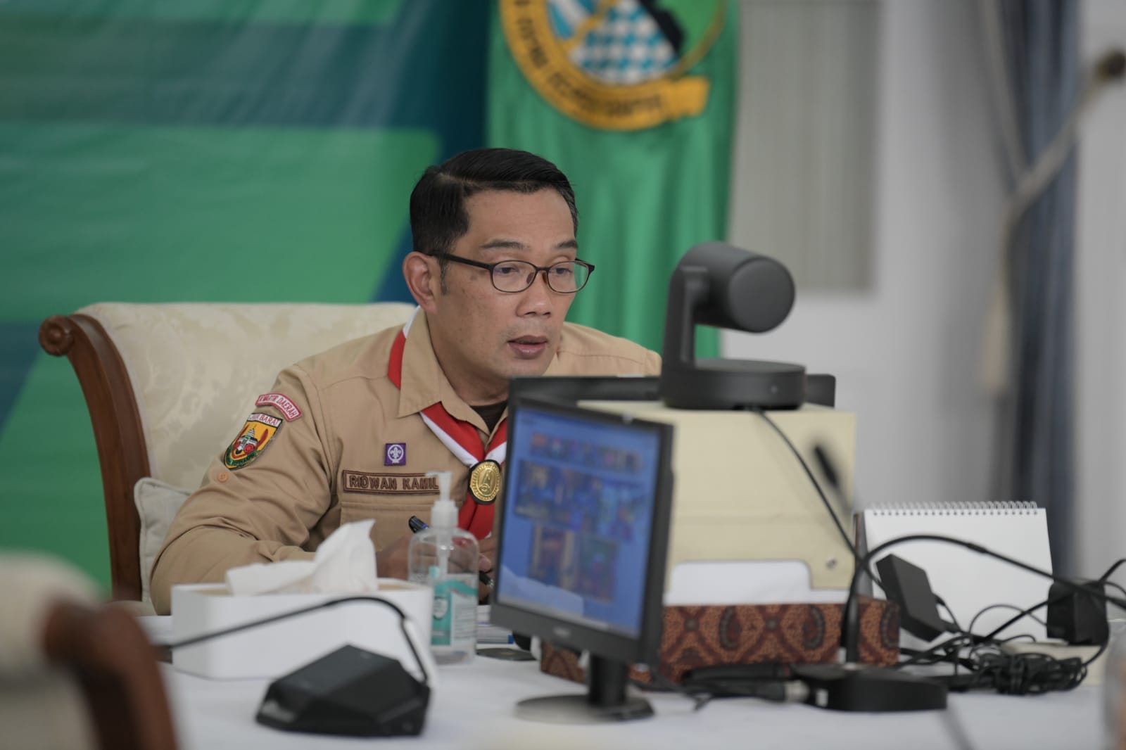 Gubernur Jawa Barat Ridwan Kamil acara konferensi pers perihal penanganan Covid-19 Jabar yang dilakukan virtual di Kota Bandung, Selasa (14/9/2021). (Foto: Rizal FS/Biro Adpim Jabar)