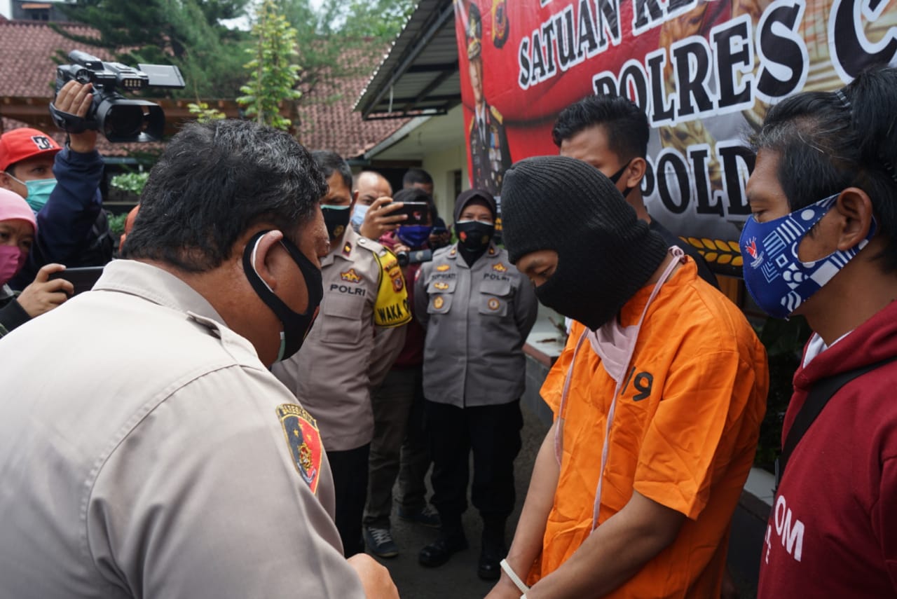 Tersangka diketahui berinisial NO Bin AS, lahir Cimahi, 16 November 1993, buruh, alamat Kp. Sukamanah Desa. Hegarmanah Kec. Bojongopicung Kab. Cianjur.