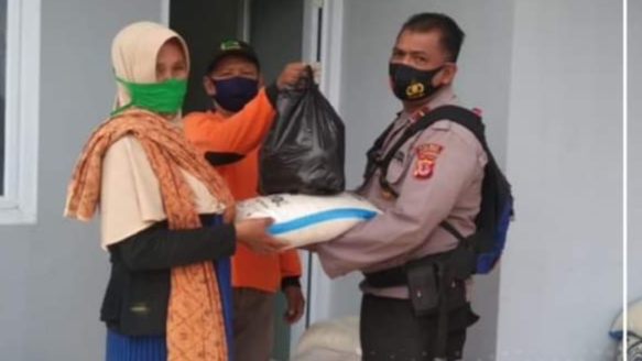 Polsek Talaga Bagi-Bagi Sembako Sambil Sosialisasi 3 M