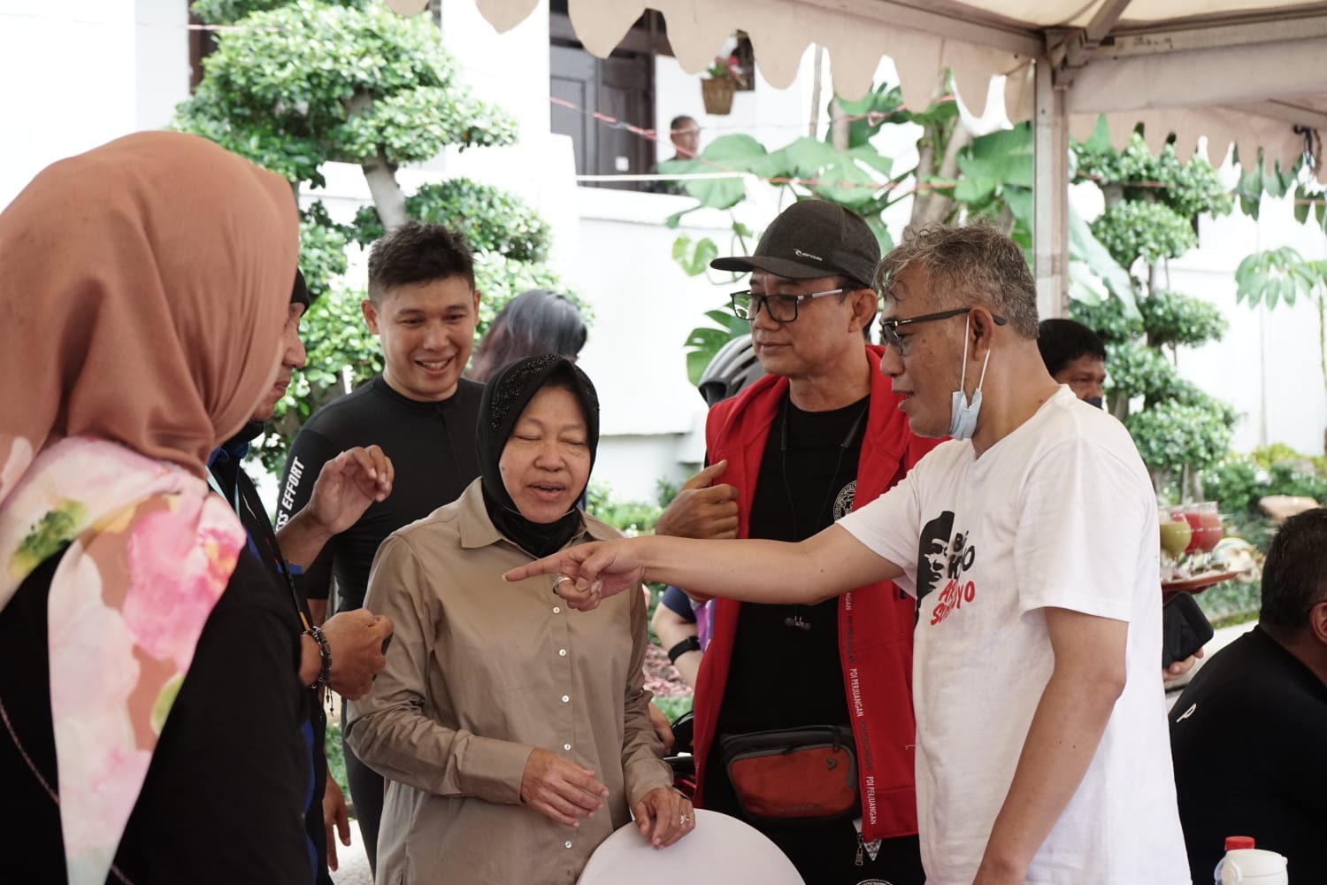 Kedatangannya disambut hangat oleh Menteri Sosial yang juga kader PDIP, Tri Rismaharini, Walikota Surabaya Eri Cahyadi, dan juga para kader politikus PDIP lainnya seperti Yoseph Aryo Adhi, Budiman Sudjatmiko, Pulung Agustanto. Tampak para politisi kader PDIP tersebut bersenda gurau hangat usai menyelesaikan rute bersepeda.