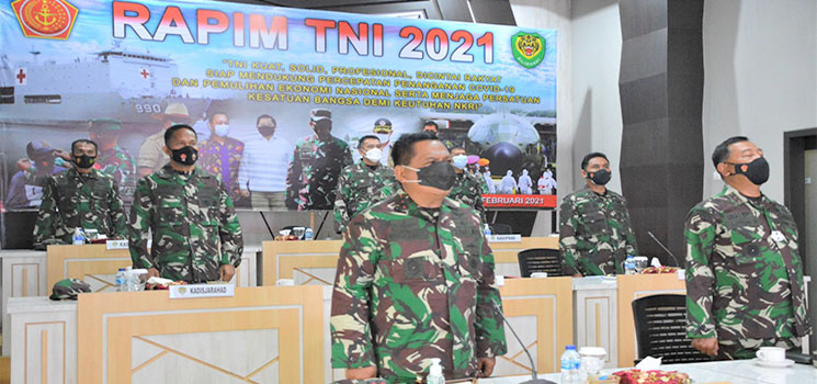 Rapat Pimpinan tahun 2021 yang dilaksanakan secara langsung dan Virtual dengan peserta seluruh Kotama di seluruh Indonesia. Dengan mengangkat tema “TNI Kuat, Solid, Profesional, Dicintai Rakyat Siap Mendukung Percepatan Penanganan Covid-19 dan Pemulihan Ekonomi Serta Menjaga Persatuan Kesatuan Bangsa Demi Keutuhan NKRI”