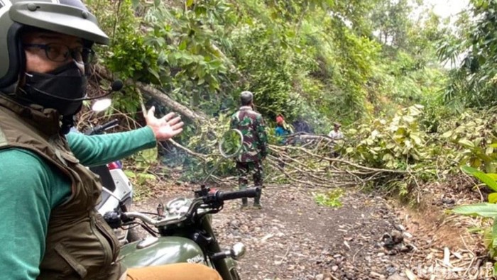 Kemudian terlihat juga, Kang Emil memasuki jalur yang dikelilingi semak-semak di sekelilingnya, lalu melibas jalanan dengan trek yang masih berupa tanah merah.
