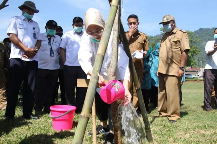 PURWAKARTA-Bupati Purwakarta Ambu Anne Ratna Mustika menghadiri Penanaman Pohon Bersama dengan PJT II Jatiluhur di Lapang Kantor Kecamatan Sukasari,Kegiatan ini merupakan rangkaian Hari Penanaman Pohon Sedunia