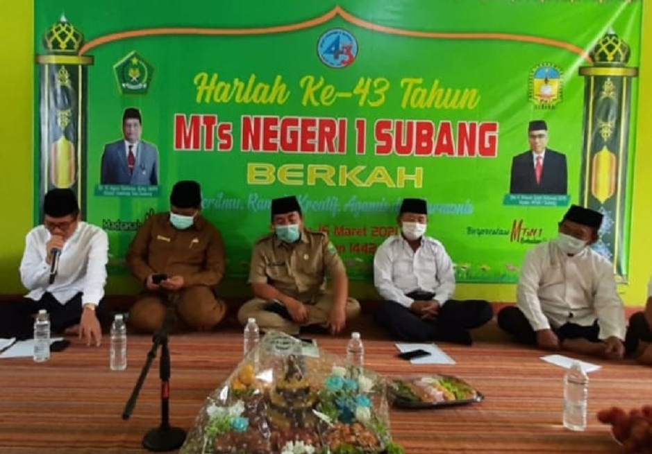 Subang – Puncak Hari Lahir (Harlah) Madrasah Tsanawiah Negeri 1 Subang yang ke 43 tahun 2021, digelar secara sederhana. Selain itu peserta diharuskan memakai masker dan tetap menerapkan protokol Kesehatan (Prokes), yang bertempat di MTs Negeri Subang, Selasa (16/3/2021).